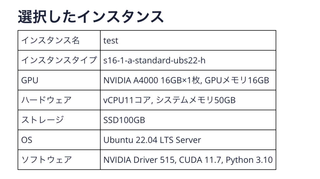 - GPUインスタンスの設定が3分で完了する簡単な操作