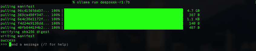 deepseek-r1:7b    0a8c26691023    4.7 GB    About an hour ago