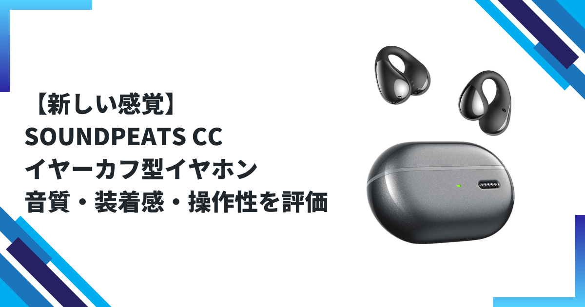 SOUNDPEATS(サウンドピーツ)から登場したイヤーカフ型ワイヤレスイヤホン「SOUNDPEATS CC」は、軽やかな装着感と開放的な音の広がりが魅力のコスパモデルです。