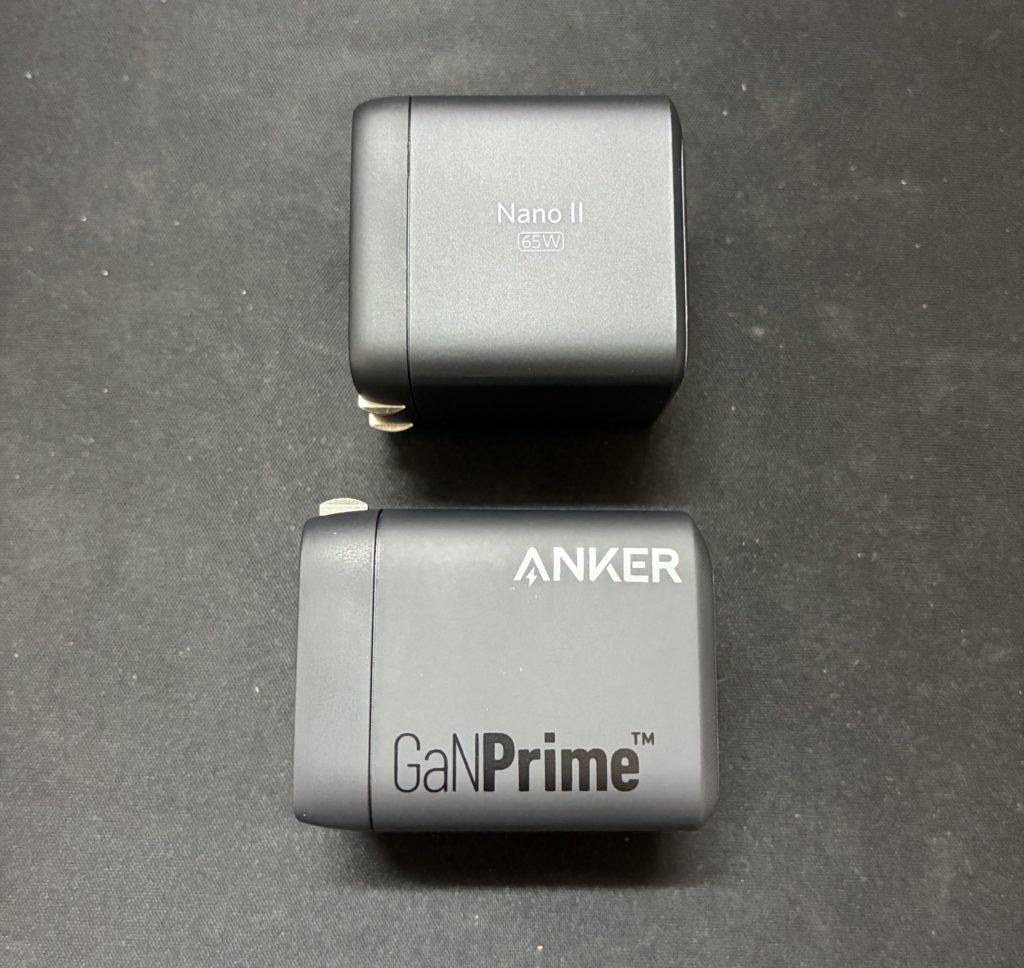 一方、Nano II 65Wは2021年に発売された単ポートモデルで、USB-Cポート1つながら、最大65Wの高出力を実現しており、MacBook Pro 13インチクラスのノートPCもフルスピードに近い速度で充電可能です。