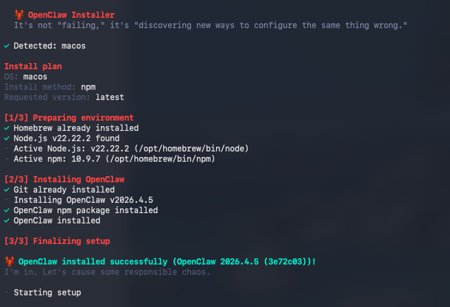 curl -fsSL https://openclaw.ai/install.sh | bash