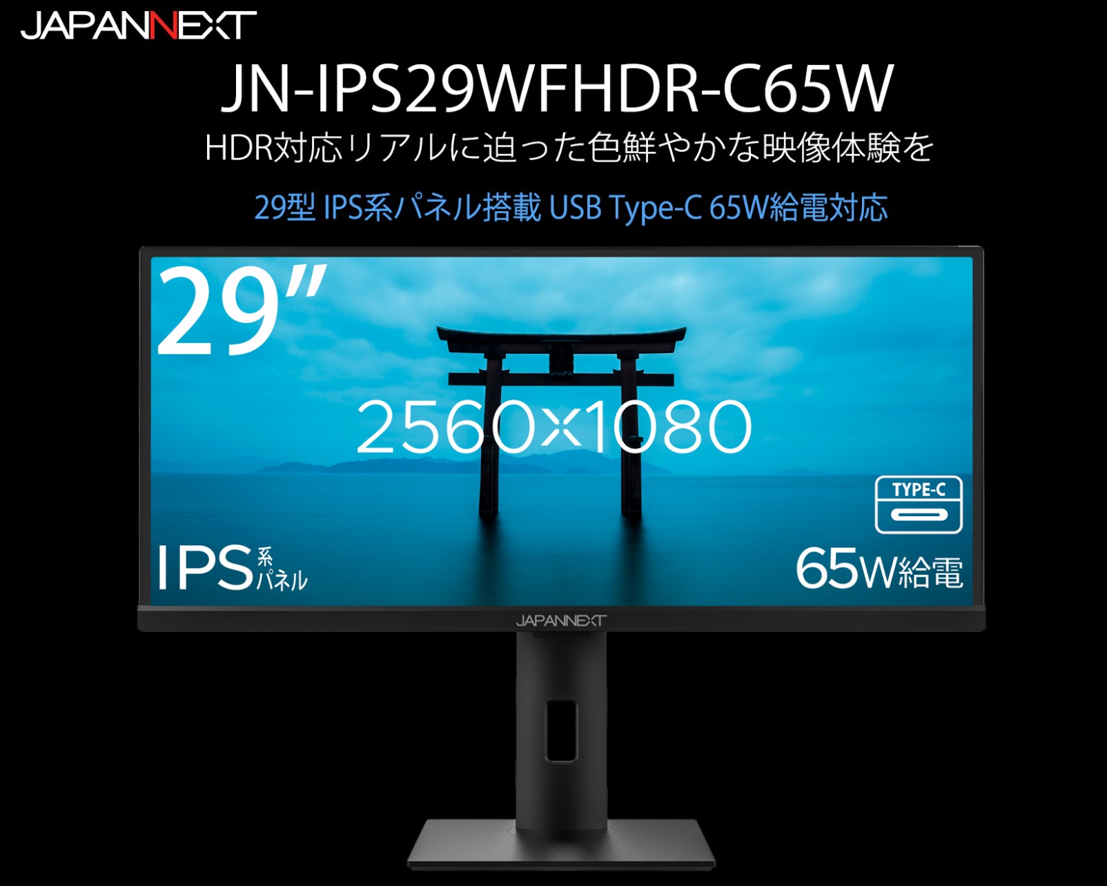 | 接続端子 | DisplayPort × 1、HDMI2.0 × 2、USB Type-C × 1(65W対応)、音声出力(イヤホン) |
