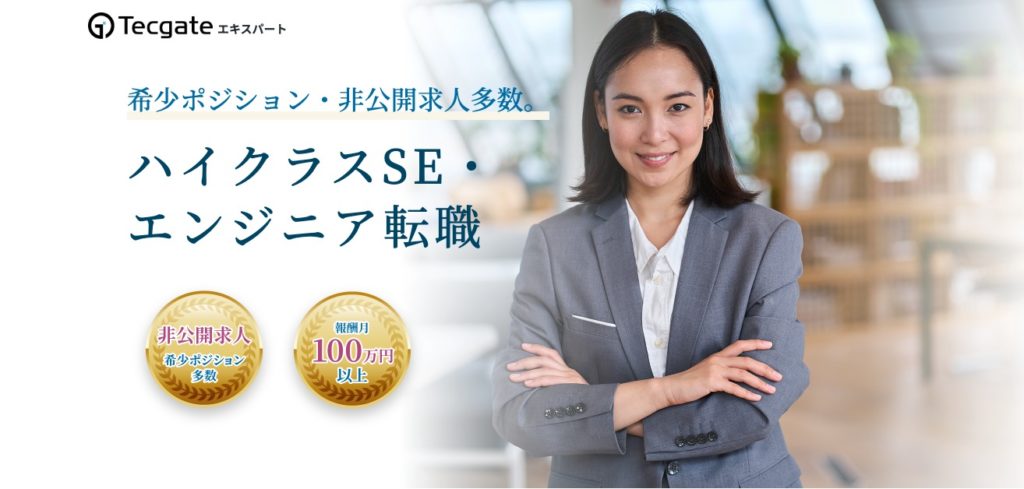 Tecgateエキスパートは、ITエンジニア向けのハイクラス転職に特化した転職エージェントです。