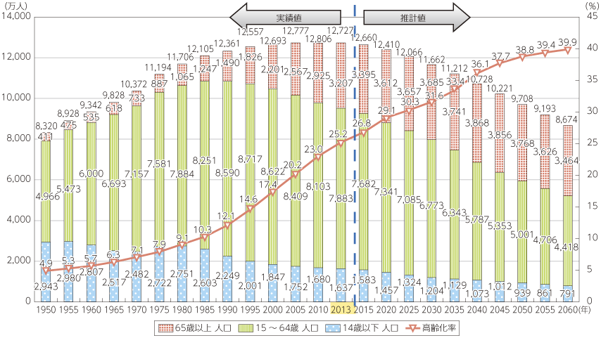 日本の人口、労働人口の減少